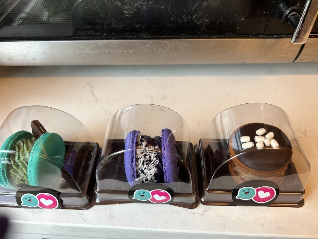 The baker creates something that she calls FATCARON. A delightful macaron filled with different flavored creams. The macarons are perfect and the filling of cream is so delicious! Not overly sweet….